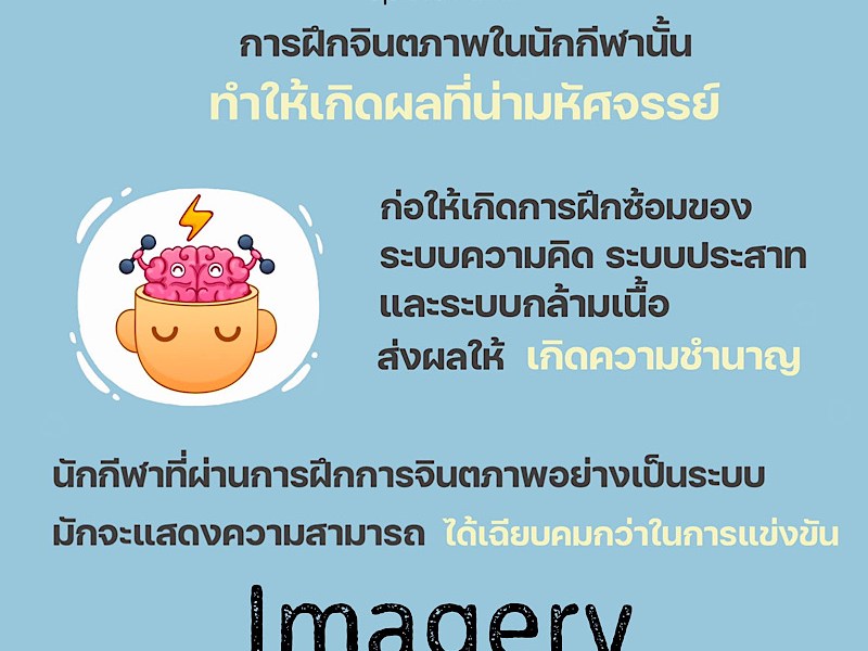 การฝึกจินตภาพ (Imagery) คือเทคนิกการฝึกทางจิตใจชนิดหนึ่ง ที่มีการนึกถึงภาพของการแสดงความสามารถ หรือขั้นตอนการทำงานที่จะทำหลายคนอาจจะเข้าใจว่าการจินตภาพคือการ “จินตนาการ” ซึ่งในความจริงเป็นความเข้าใจผิดชนิดออกทะเลไปไกล เพราะการจินตนาการนั่นเป็นแค่การคิดฝันกลางวันโดยไม่มีระบบวิธีการตามหลักวิชาการใดๆการจินตภาพที่เป็น Psychological Skill Training นั้นต้องมีการเรียนรู้ ฝึกฝน จนเป็นทักษะอัตโนมัติ มีกระบวนการฝึกเฉพาะเจาะจง ไม่ใช่แค่คิดถึงการแสดงความสามารถเฉยๆการฝึกจินตภาพในนักกีฬานั่น ทำให้เกิดผลที่น่ามหัศจรรย์ คนที่เคยฝึกจนได้ผลมาแล้วจะเข้าใจดีการฝึกนั้นจะไปทำปฏิกิริยากับสมองของนักกีฬา ทำให้ระบบประสาทของนักกีฬาฝึกการส่งกระแสประสาทไปยังกล้ามเนื้อที่จะต้องแสดงความสามารถ โดยจะทำให้ความเข้มข้นและลำดับการระดมมัดกล้ามเนื้อนั้นมีความแม่นยำพูดฟังง่ายๆ ก็คือทำให้เกิดการซ้อมของระบบ ความคิด ประสาท และกล้ามเนื้อให้เกิดความชำนาญนั่นเอง เวลาแสดงความสามารถจริง เทคนิกจึงมักจะเฉียบคมกว่าคนไม่ได้ฝึก